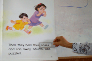 Frances going through the rudimentary of the phonics of English