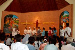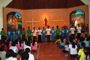 At mass, there was a brief introduction of the international community. The Salesian Sister in charge of the International volunteer and her council members were visiting Cambodia. We were also introduced and thanked for our services to the youth leaders. Our students were introduced and also shared about what they have learnt from the workshop.