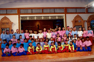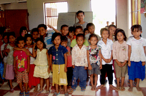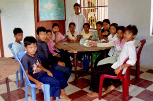 Thank God for the big bag of candies. It was distributed very quickly among the children. Our students, Sam Phana Nha and Ren Sophyna showed us their classes. They have to teach (even though they are Grade 9 students themselves) three hours a day; subjects in Khmer and some English too to the young children of the village. On Sundays, they teach catechism, (even though most of the children are not Catholics).
