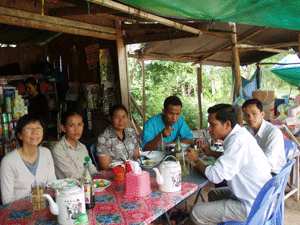 Theresa having lunch with some of her students at the restaurant within the Takeo Eye Hospital ground