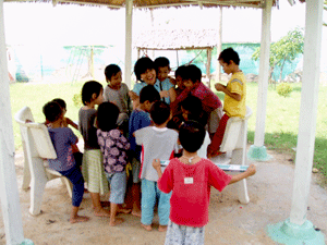 The Brothers also have a "little" school, with one teacher teaching Khmer and English. There are a couple of government schools nearby and thus only those who cannot afford to send their children to the paying school come here. However, the English class is extremely popular. More students turn up for class and some even turn up as early as noon, even though class starts at two in the afternoon.