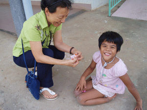On October 20, 2007, we finally got round to visiting the MC Sisters of Chom Chao – "HOME of PEACE". I called Sr. Karol, a Singaporean, to arrange for our visit. There are 48 children (1-16 years old) with positive HIV AIDS in their home. I prepared some candies and snacks for the visit.