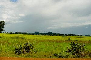 After lunch on Wednesday, we left for Sneng village, our first stop on the way to Pailin city, which is 70 km from Battambang. There were white fluffy clouds in the sky and the scenery was a welcome change to the usual flat green padi fields albeit good for the eyes.