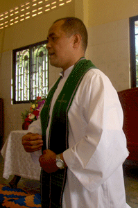 Vuthy, the youth co-ordinator took me to the Presbytery. After dinner, Fr. Totet and I discussed the Parish English Programme. It was a pleasant and entertaining evening. It ended with Fr. Totet mentioning that he would be visiting Sneng village and Pailin city the following day with Vuthy and Kam Thong, the catechism teacher and he invited me to ' come and see'.