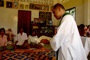 The Church has been looking urgently for an alternative place. Currently there are 25 Catholics and it augurs well for the church to see how young they are. The youth soon gathered with Vuthy to select and practise the hymns for mass.