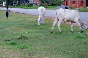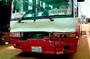 WORKSHOP 3 - 18/19 August We We booked the 0845 hours bus to Battambang but it was delayed and left at half nine. Thus to make up for “lost’ time, the bus driver was speeding when we were traveling along the countryside of National Route 5. After a few hours of traveling, a cow suddenly ‘decided to cross the road’ (usually they are tied to a little stick in the ground and it must have freed itself) and the bus driver could not stop in time. The bus hit the big cow and the it was flung into the little ravine. We were all seated on the front seats and had to brace ourselves. We were worried about the poor cow but the bus driver was more concerned about his bus than the passengers on board. As we continued our journey, every time the driver came across a cow or a herd of cows, he slowed down, as he seemed afraid that another accident might occur. Meanwhile, Theresa was sitting in fear, even when a dog crossed the path of the bus; she braced herself for the worst to happen!