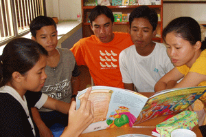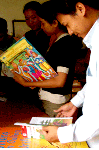 They had to go through the book and discuss its merits, for example, values and illustrations that lend themselves to prediction and discussion, the teaching points that they could draw from the books (color, the size and type set of print) in accordance to the level that they were teaching. For younger children, greater emphasis was put on the illustrations, story line for discussion, the print and values to be taught.