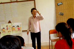 Chy Thy of Tahen village “I’m very quiet when I met the teacher; she made me happy about her “Big Book” so I take this experience to share with my students. They will be interested and try to know what I will show them.” Whereas Yan Sokhorn from Tapung village shared, “I feel very happy that I can join the workshop because I can get some experience from the teacher and we can share with the children.” Frances’ closed with this remark to the class: “If you teach what you have learnt, you learn twice over”.
